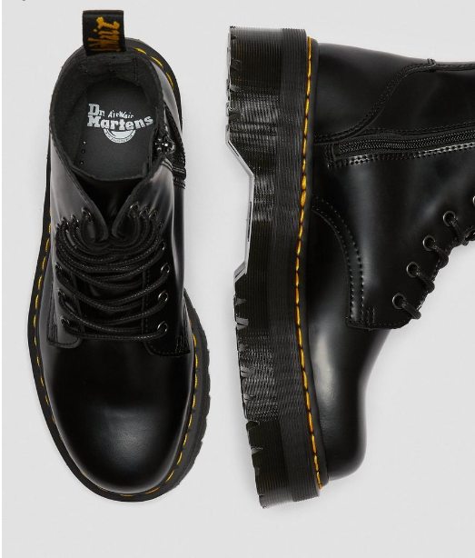 Quando lo stivale Jadon è uscito dalla linea di produzione nel 2013, sapevamo di aver realizzato qualcosa di speciale. Oltre 60 anni del nostro inconfondibile DNA, elevato su un'audace suola platform. Un modello a 8 fori, realizzato con la classica pelle Smooth lucida Dr. Martens e rifinito con una robusta suola in PVC. Gli stivali Jadon conservano i dettagli del nostro modello Original: le cuciture gialle e la linguetta AirWair sul tallone.
