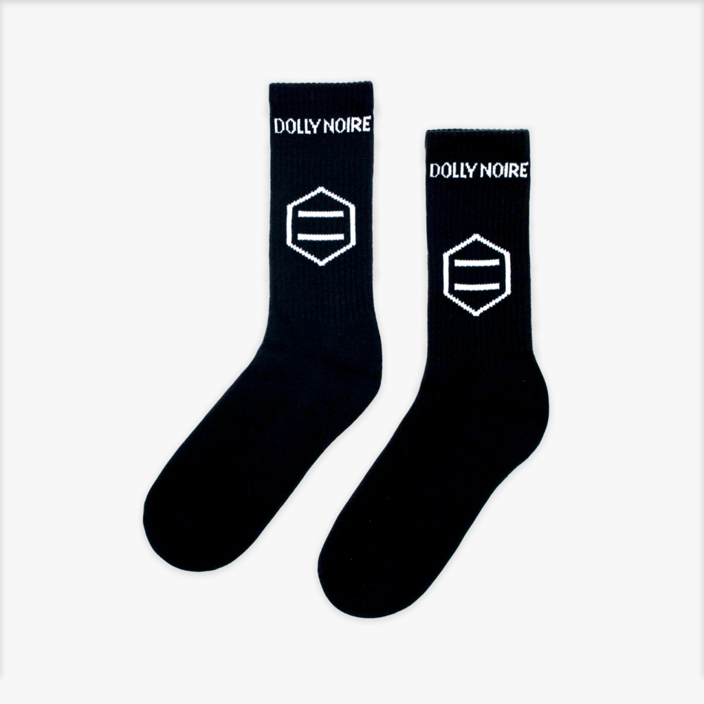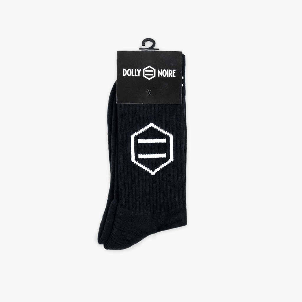 Calze Dolly Noire con logo esteso ed esagonale. Indispensabile e perfetto per tutti i giorni per uno stile deciso.
