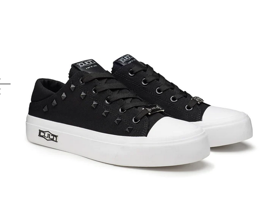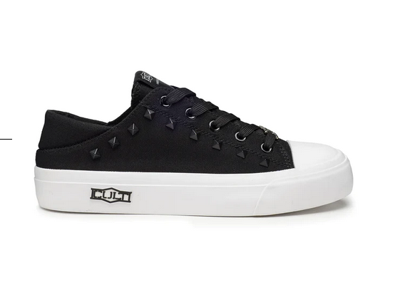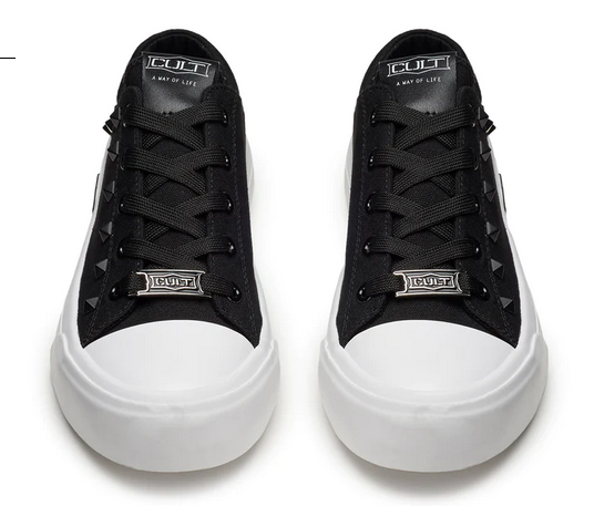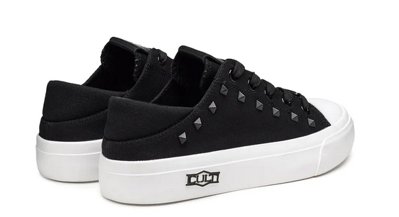 Questa stagione, Cult reinventa le classiche sneakers in canvas nero con comode suole e punta in gomma a contrasto. Rifinite con un’affascinante e briosa decorazione con borchie piramidali sur ton e dettagli logati che sono in grado di impreziosire qualsiasi outfit casual.