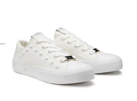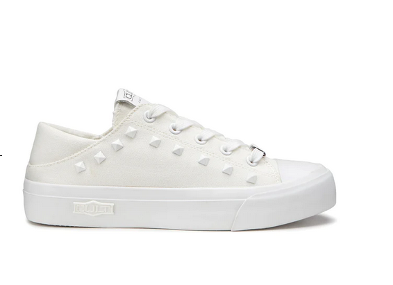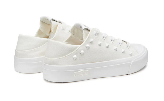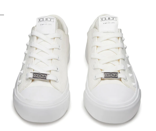 Questa stagione, Cult reinventa le classiche sneakers in canvas bianco con comode suole e punta in gomma. Rifinite con un’affascinante e briosa decorazione con borchie piramidali sur ton e dettagli logati che sono in grado di impreziosire qualsiasi outfit casual.