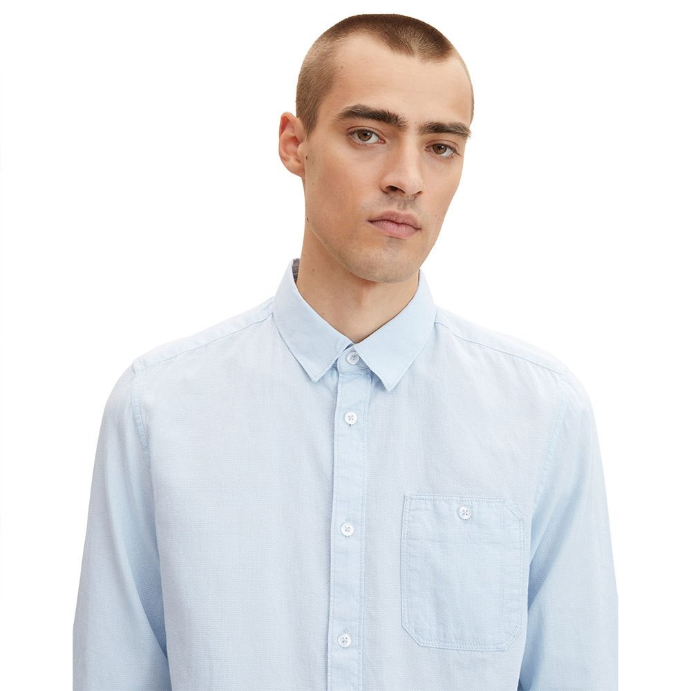 Camicia da uomo di Tom Tailor con vestibilità regular. Questa camicia ha maniche lunghe, colletto classico ed è abbottonata sul davanti. La camicia è realizzata in cotone a trama testurizzata.