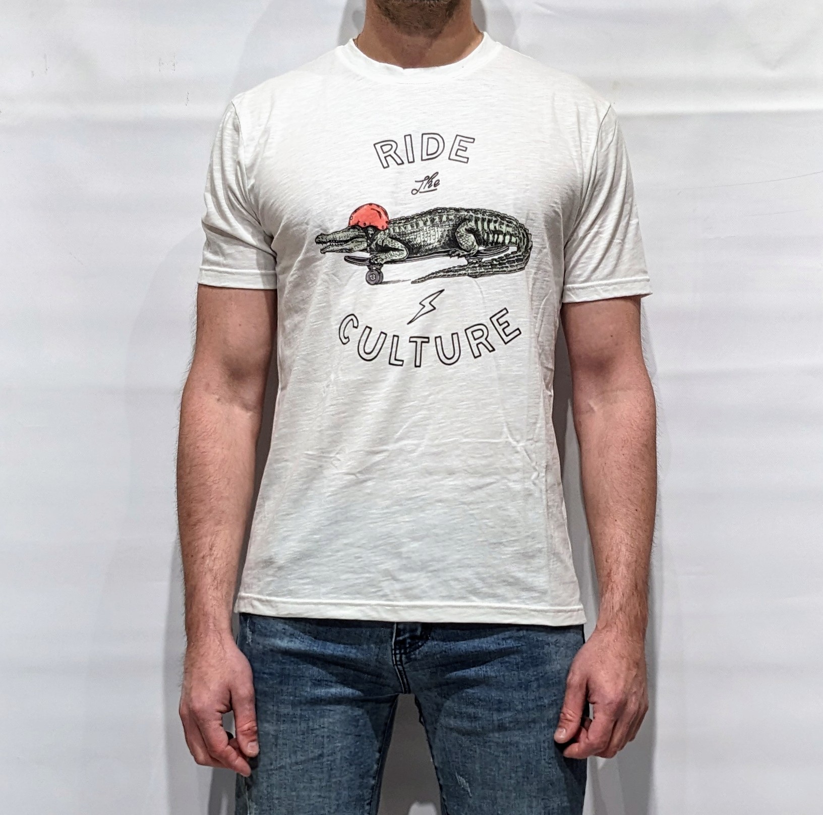 T-shirt in jersey di cotone fiammato, vestibilità regular. Girocollo, maniche corte e stampa d’autore sul fronte.