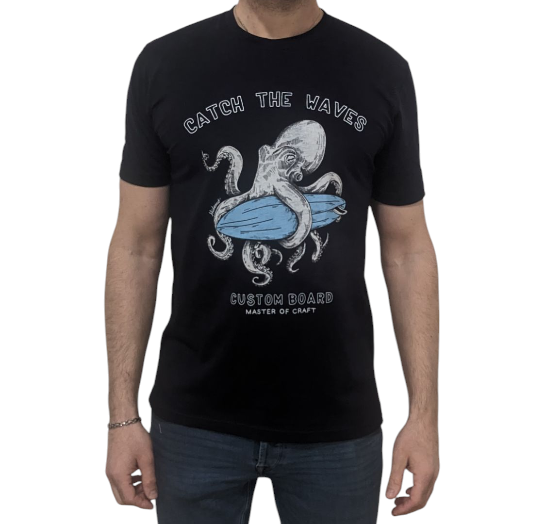 T-shirt in jersey di cotone fiammato, vestibilità regular. Girocollo, maniche corte e stampa d’autore sul fronte.