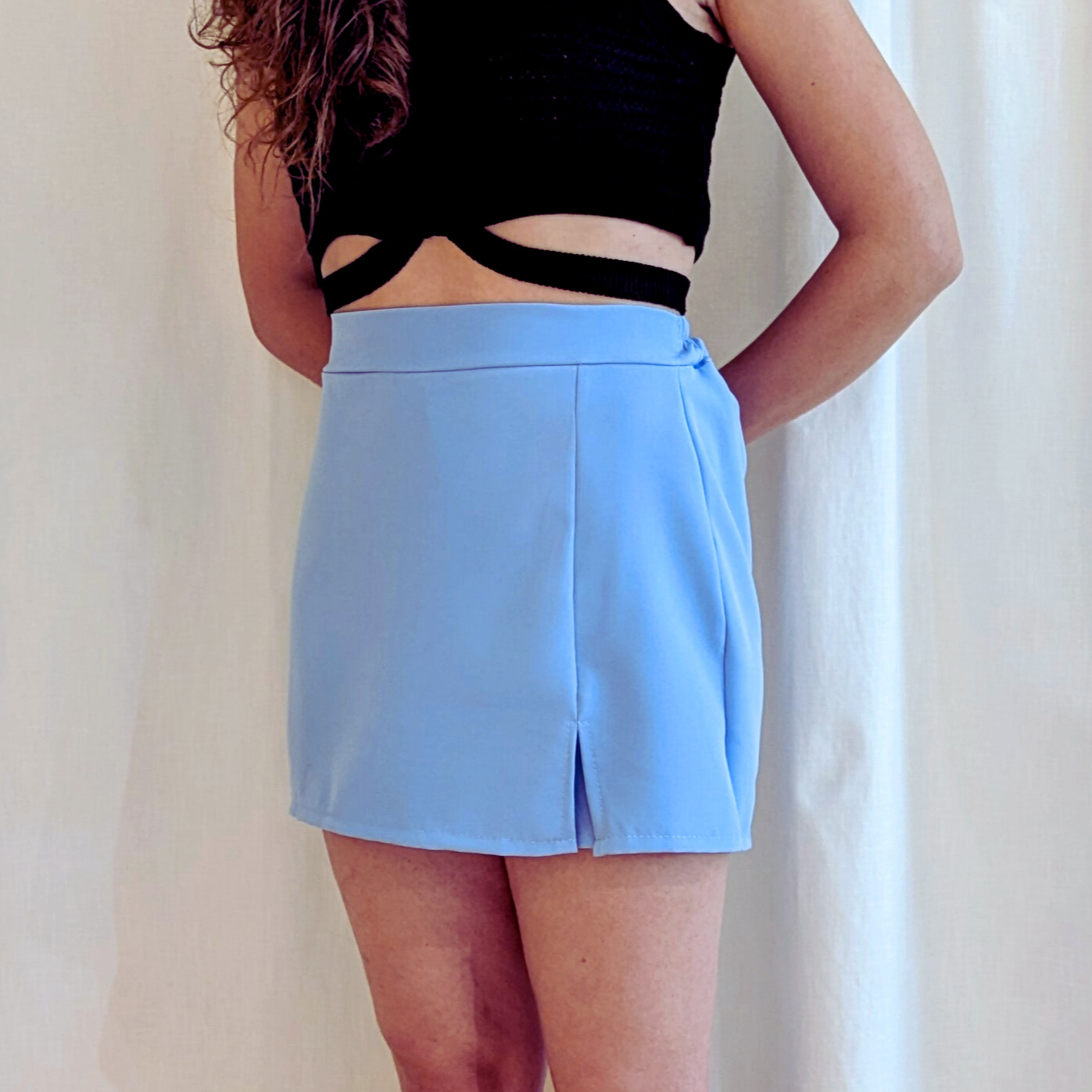 Una gonna corta alla moda, impreziosita da un pratico pantaloncino integrato per maggiore comfort e sicurezza. Il leggero spacco aggiunge un tocco di femminilità e movimento, mentre l'elastico sul retro garantisce una vestibilità comoda e adattabile. Perfetta per un look estivo fresco e trendy