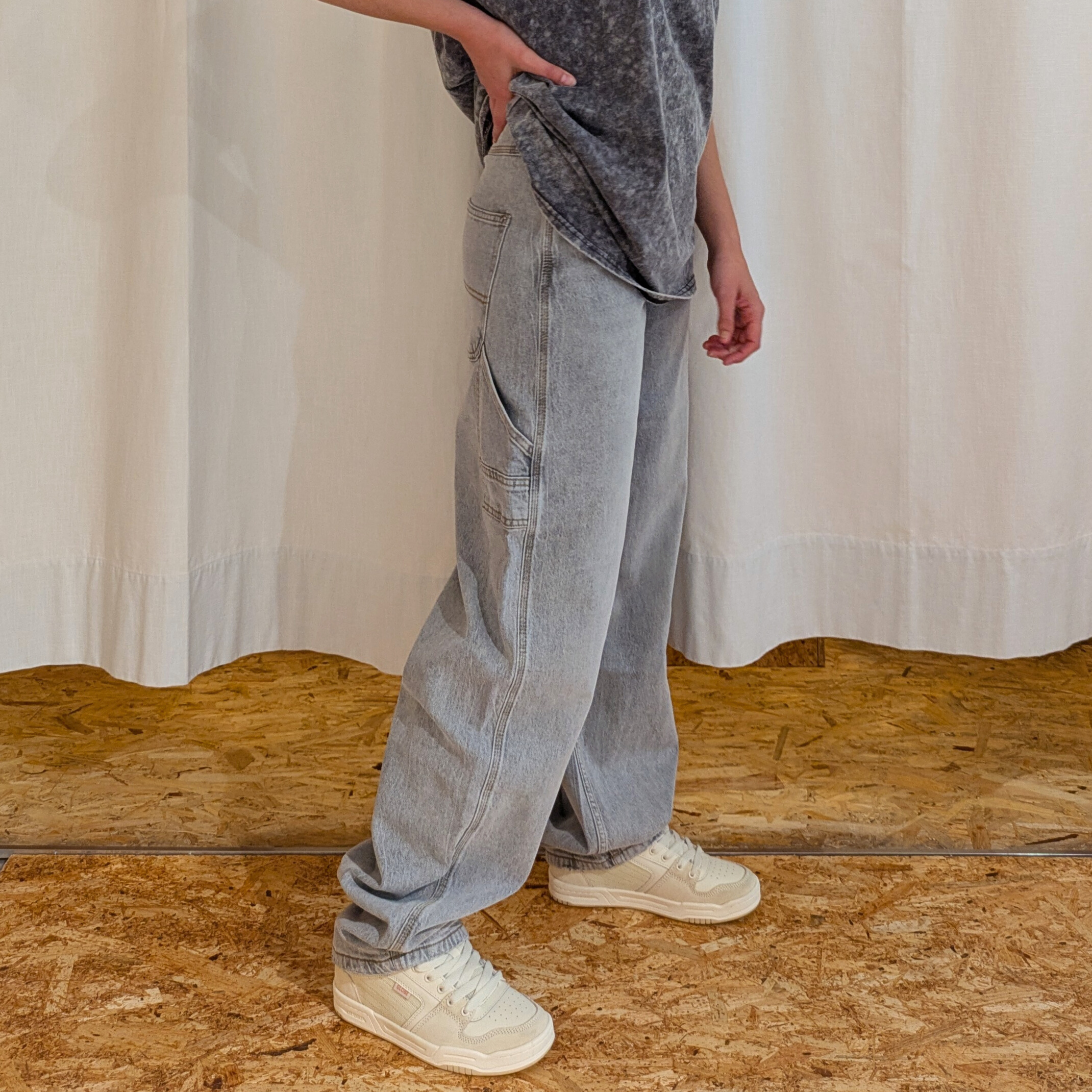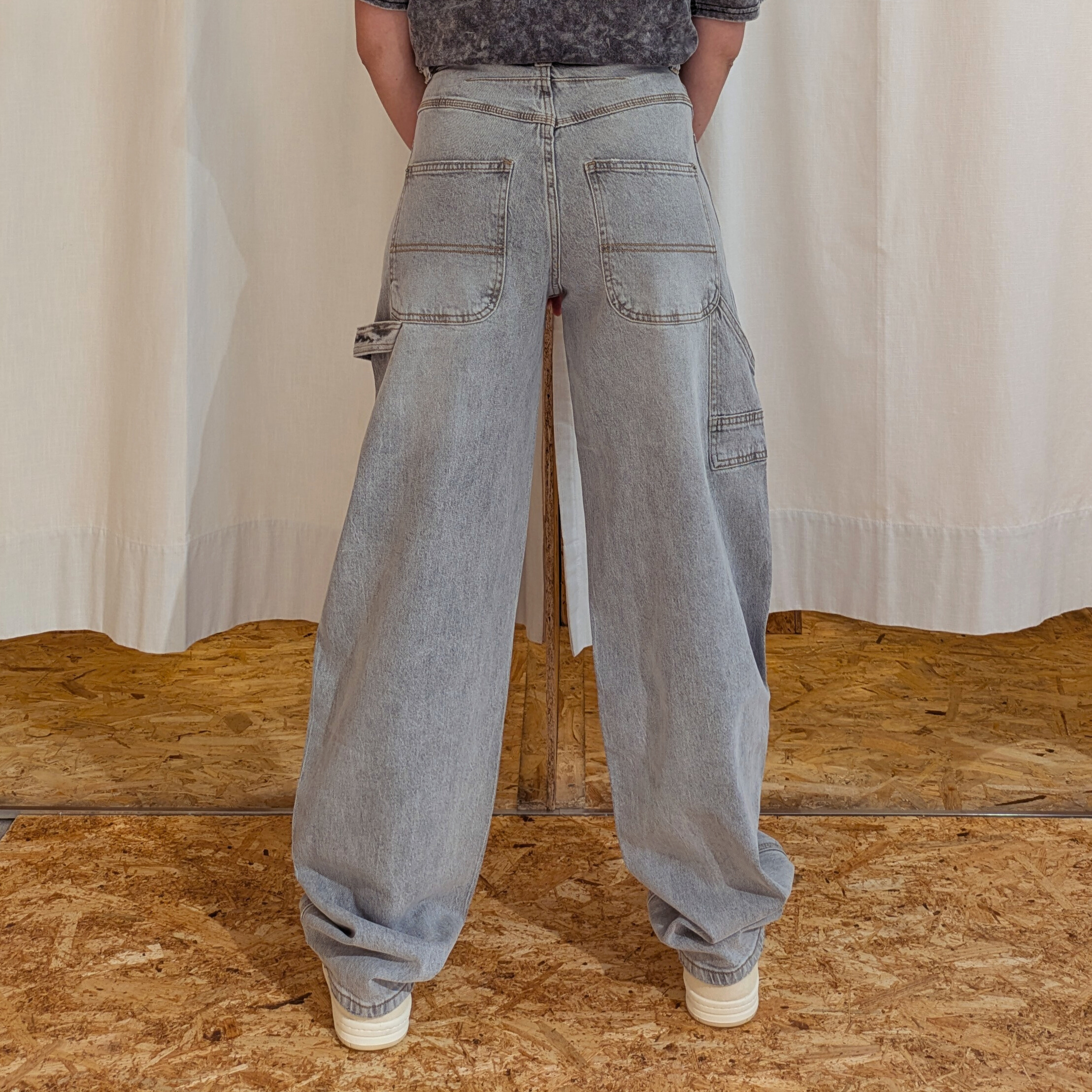 Casual e di tendenza, questi jeans baggy grigi offrono una vestibilità ampia e rilassata, perfetta per un look urbano e contemporaneo. Realizzati in denim morbido ma strutturato, presentano una vita media e una gamba ampia che si stringe leggermente sul fondo, regalando comfort e stile senza sforzo. Il colore grigio délavé aggiunge un tocco grintoso e versatile, facile da abbinare sia con capi basic che con pezzi più ricercati. Ideali per un outfit street style dal carattere deciso.