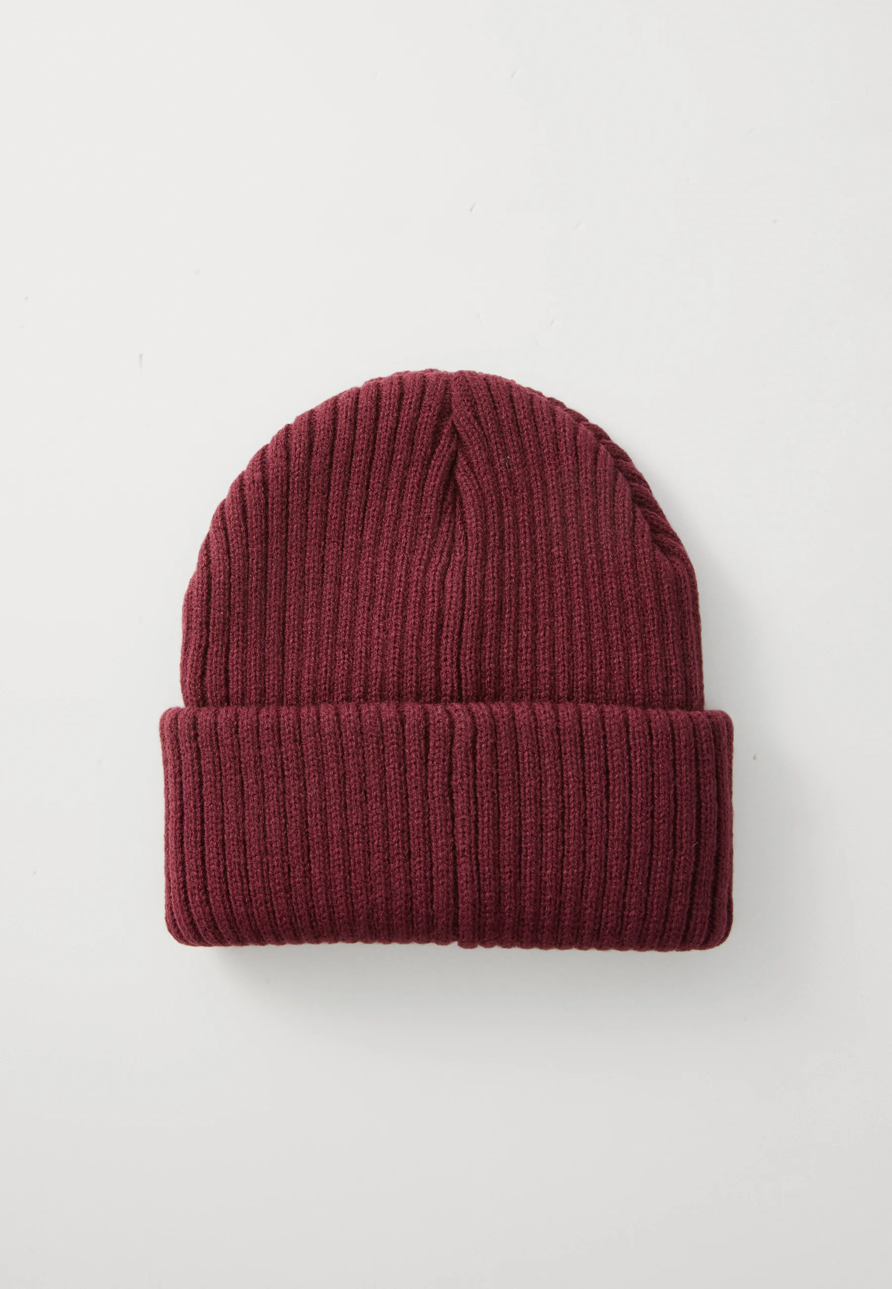Berretto in maglia larga, leggero, in 100% acrilico, con risvolto e ricamo sul davanti.