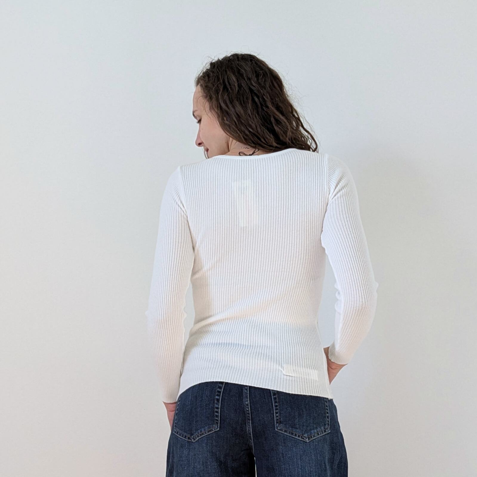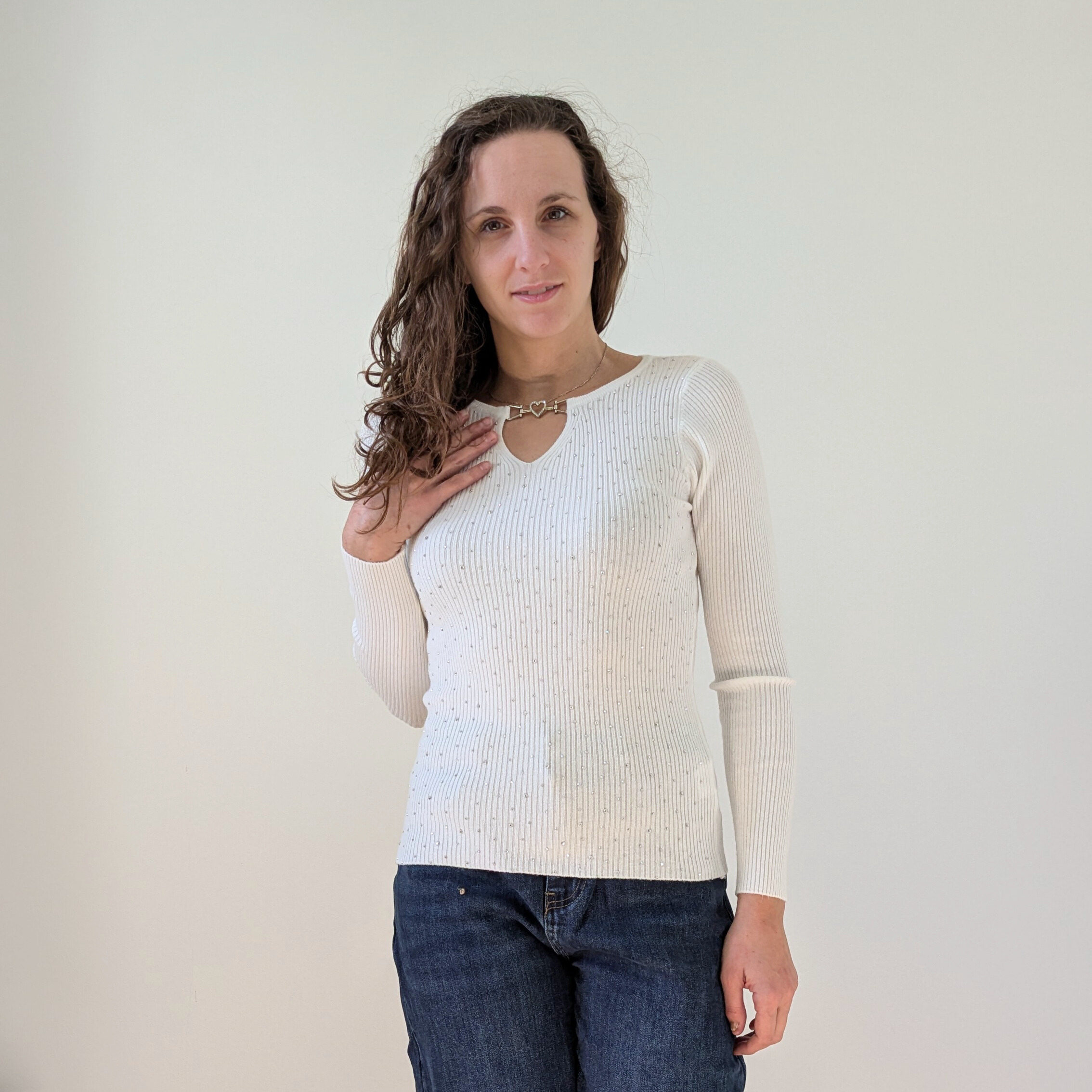 Questa maglia a manica lunga con scollatura a cuore è il capo ideale per chi ama un look elegante ma con un tocco luminoso.