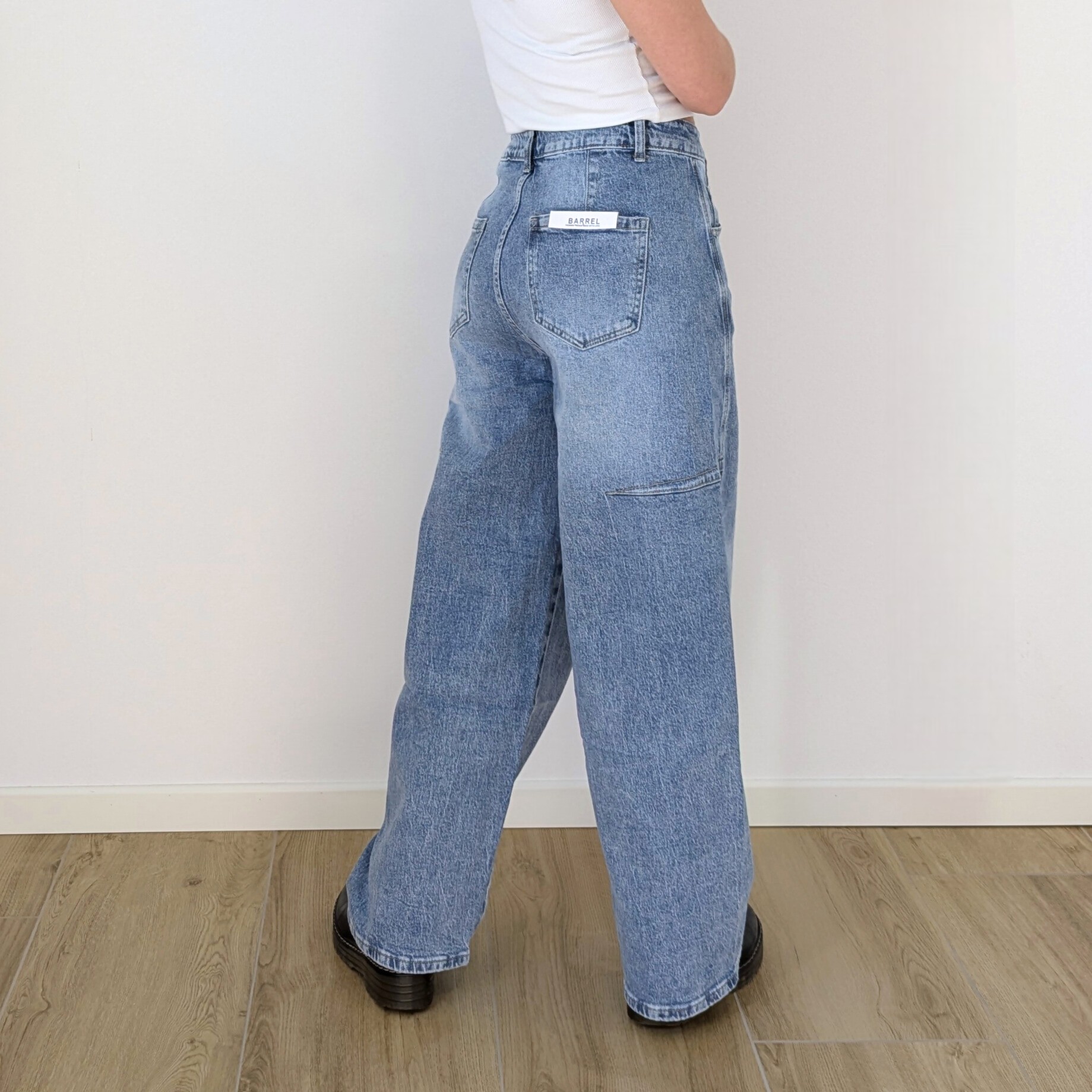 Jeans da donna dal design essenziale e contemporaneo, caratterizzato da una gamba dritta leggermente ampia che garantisce comfort e stile in ogni occasione.