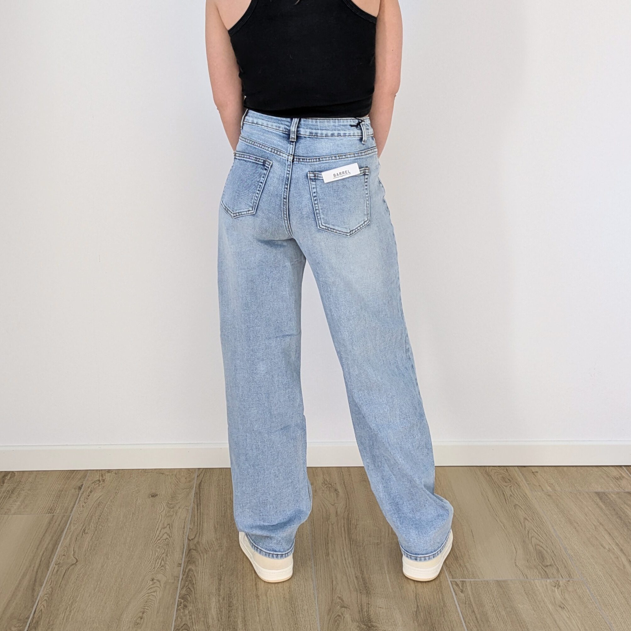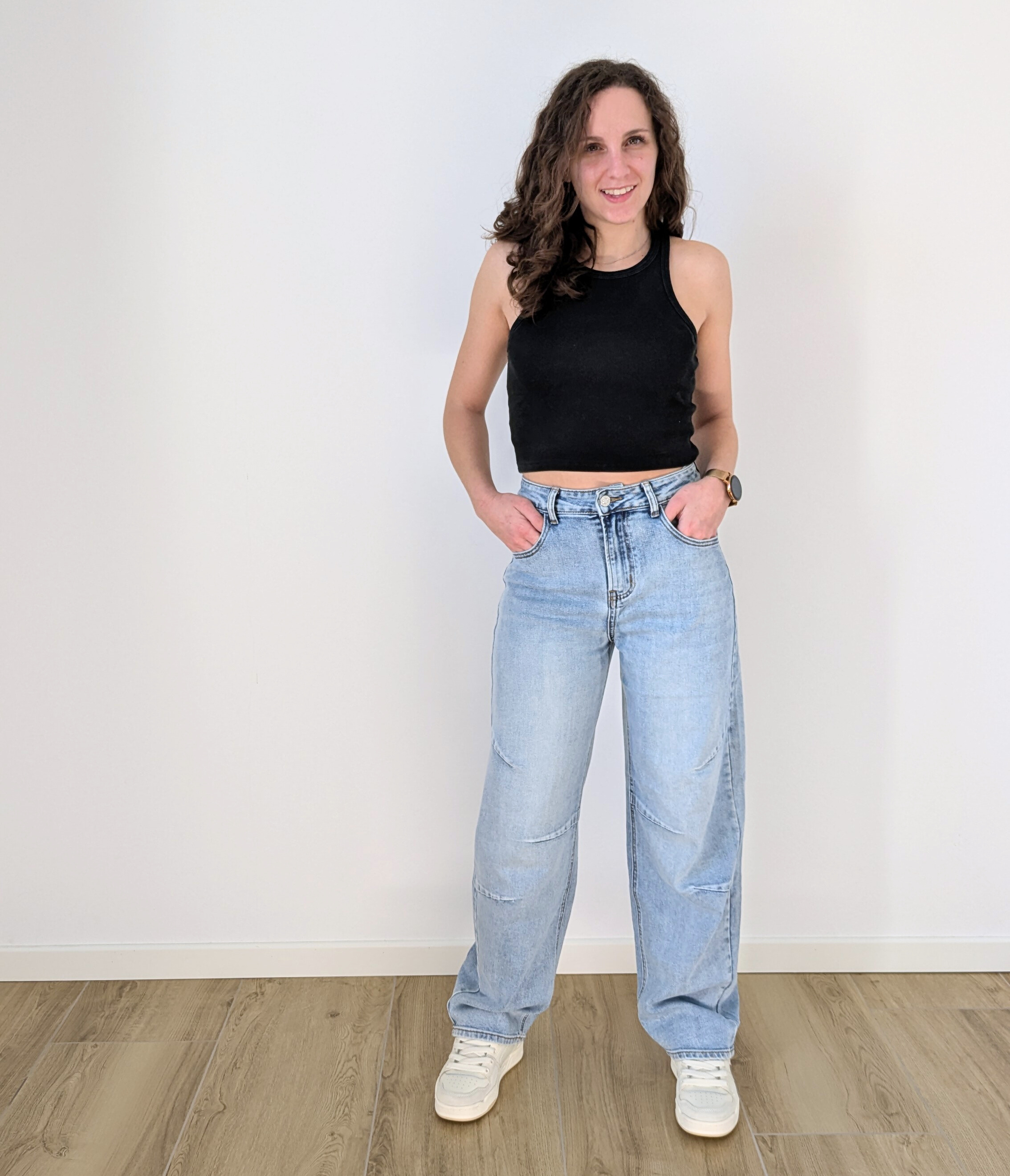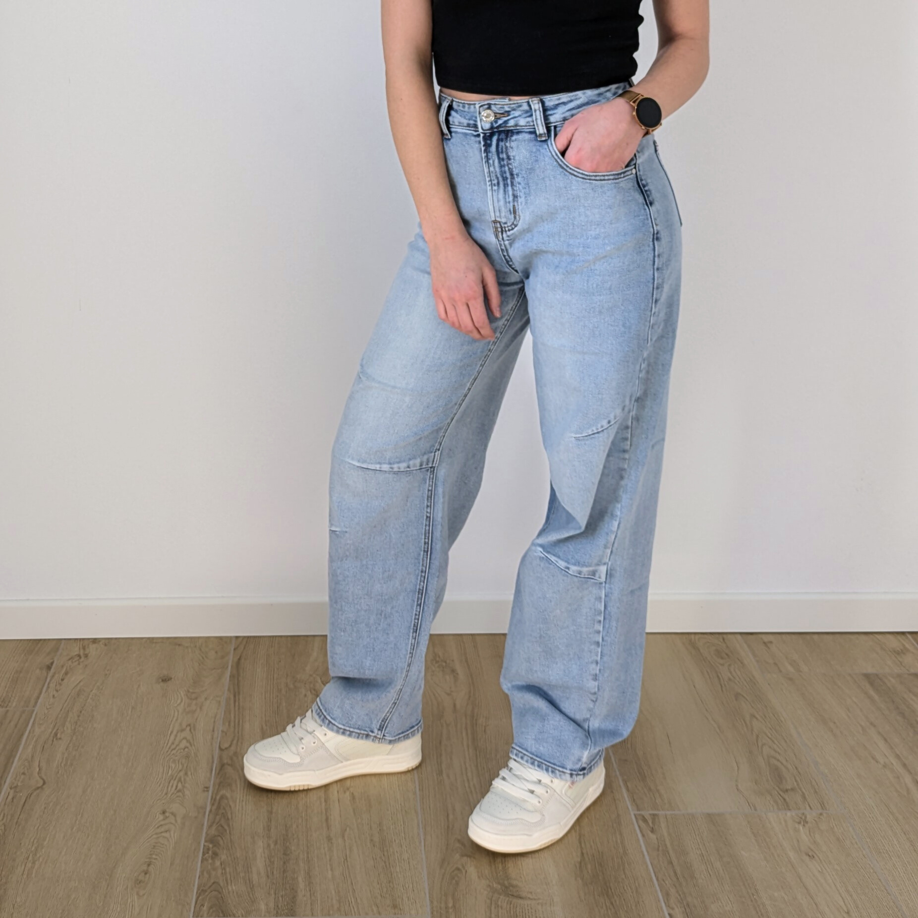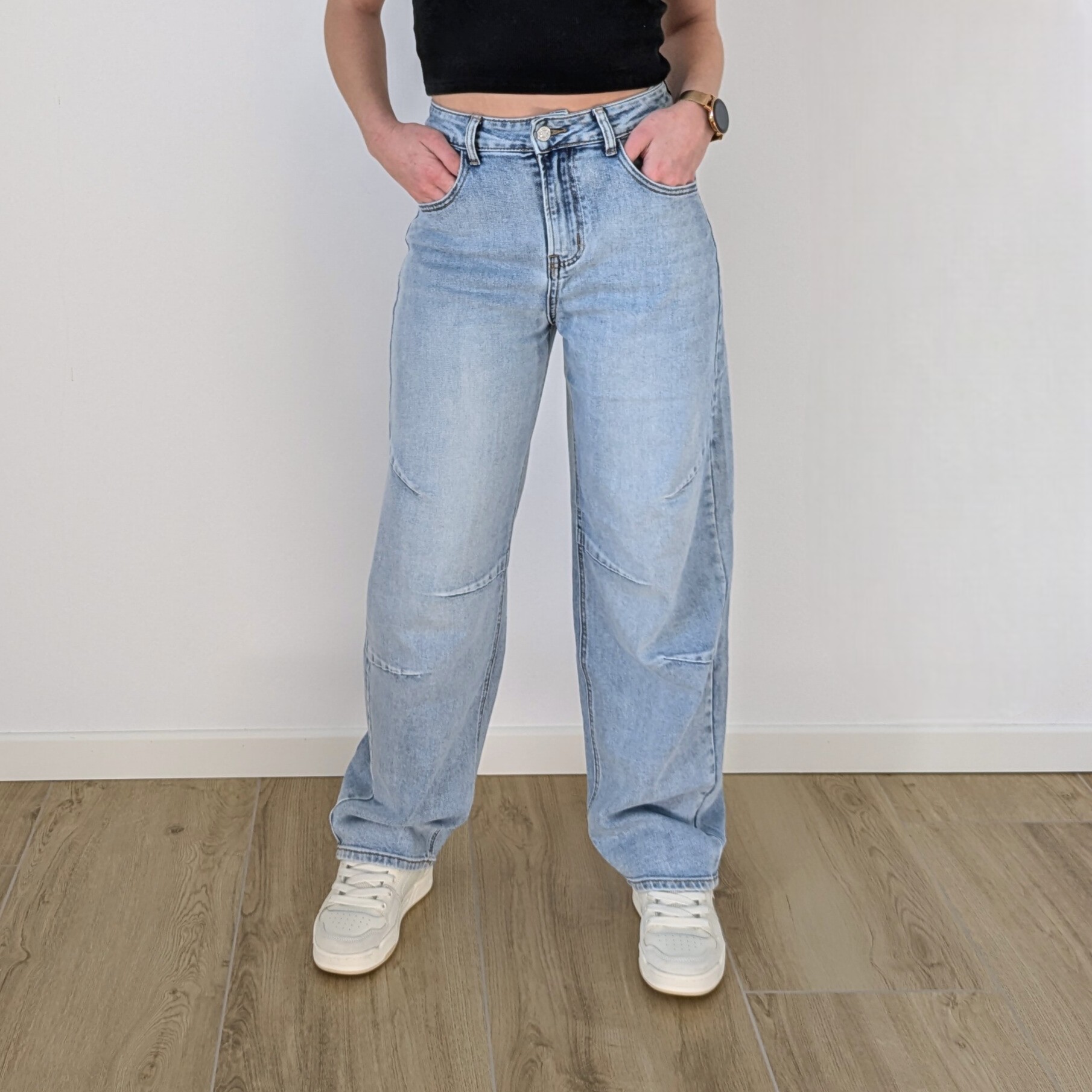 Jeans da donna dal design essenziale e contemporaneo, caratterizzato da una gamba dritta leggermente ampia che garantisce comfort e stile in ogni occasione.