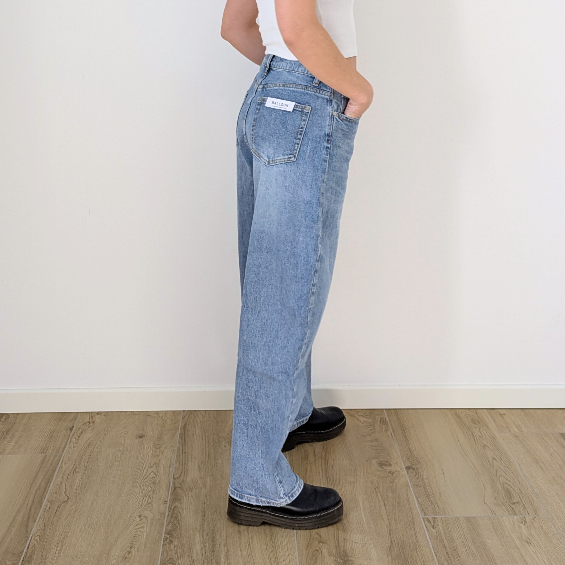 Jeans da donna balloon fit dal design moderno e ricercato, caratterizzati da una vita alta che valorizza la silhouette e da una gamba ampia con volume morbido che si stringe leggermente verso il fondo.