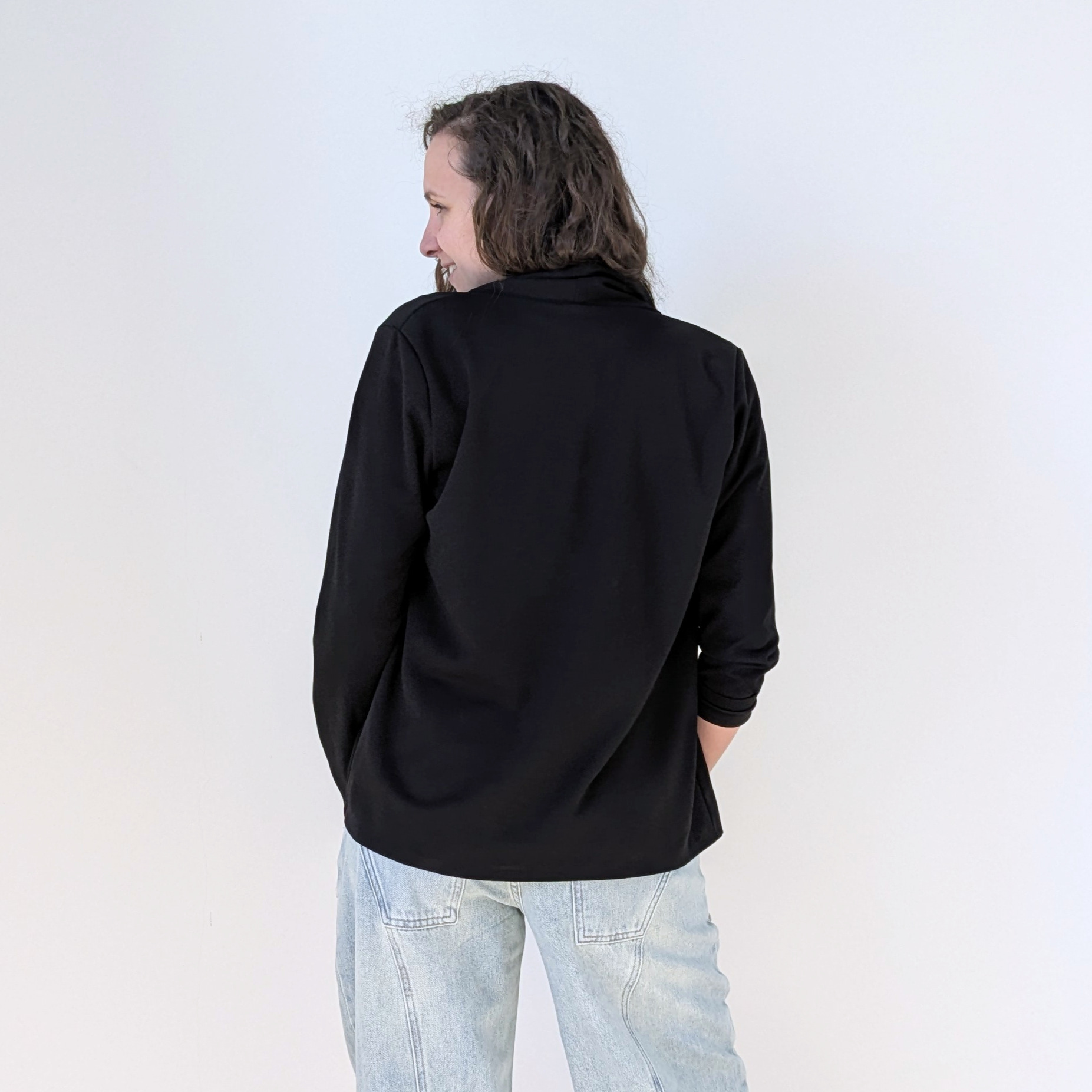 Giacca da donna semplice e destrutturata, dal design essenziale e contemporaneo. Priva di bottoni, scivola morbida sulla silhouette grazie al tessuto fluido e leggero, valorizzato da una tinta unita elegante e versatile. Perfetta per completare look minimal con naturalezza e stile.