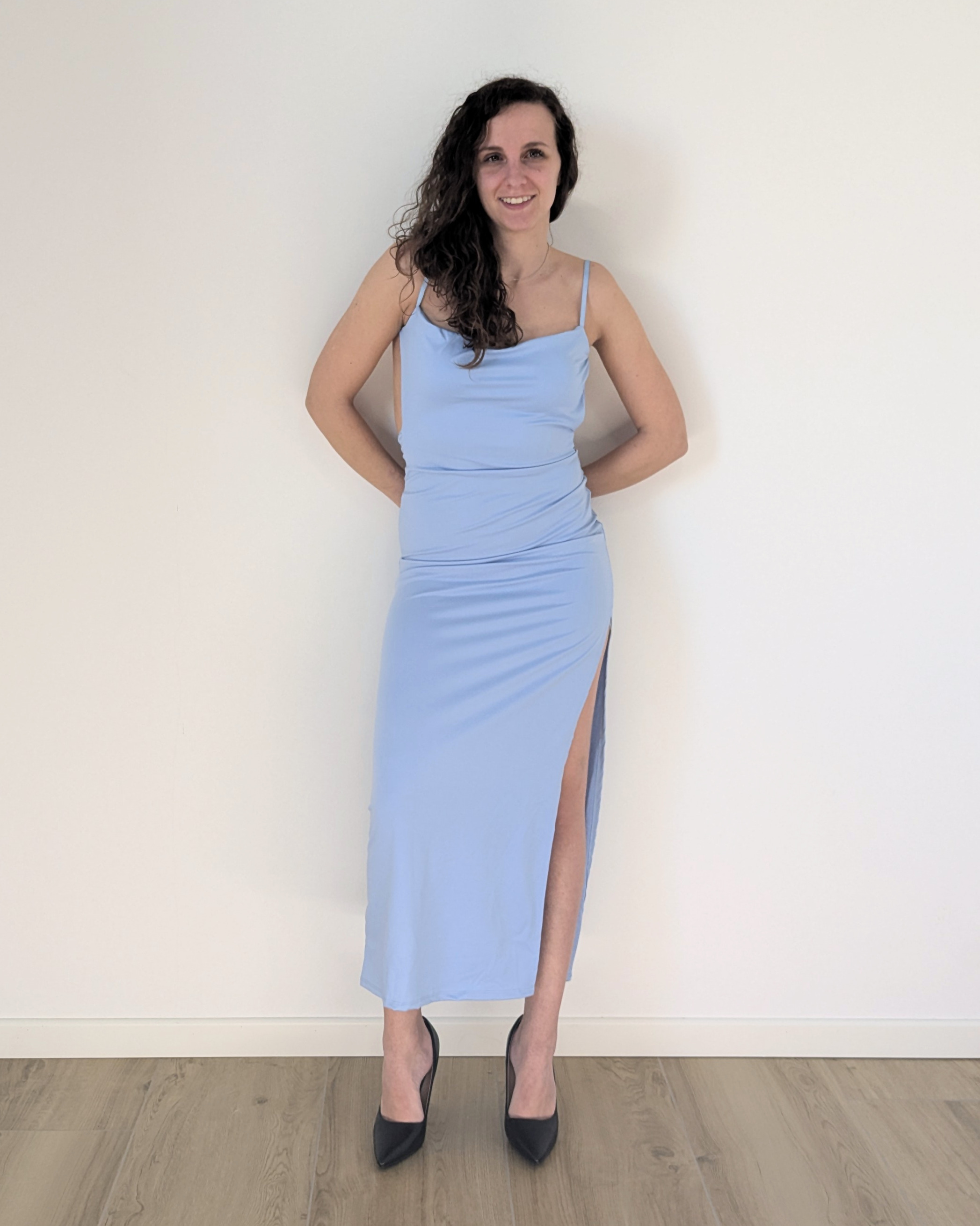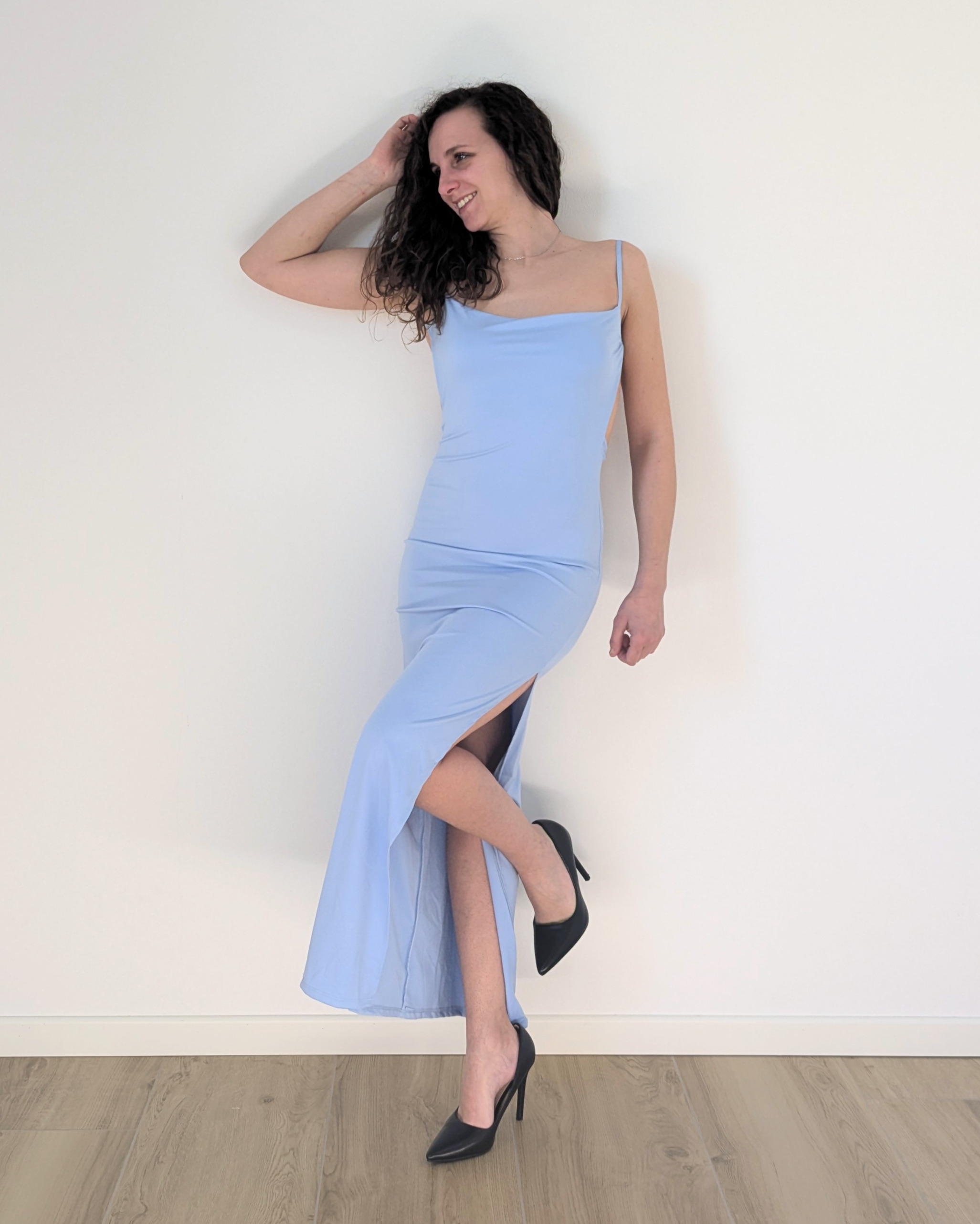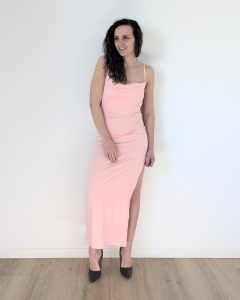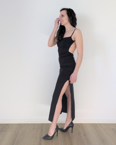 Il profondo spacco laterale dona movimento e slancia la figura, aggiungendo un tocco audace e sofisticato. Perfetto per serate speciali, eventi eleganti o occasioni in cui distinguersi con stile.